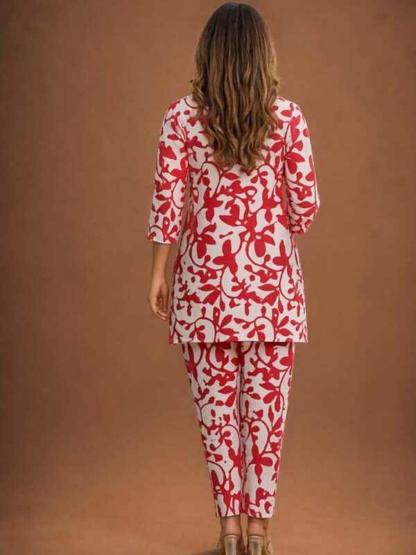 Red Print on light base co-ord set – Cotton
