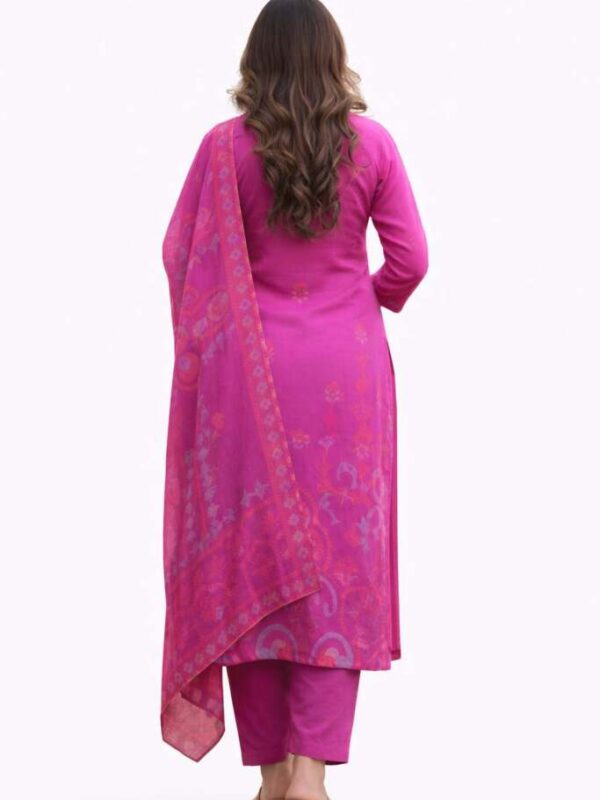 Pink Kaftan Set with Dupatta, Colorful Embroidered Trim