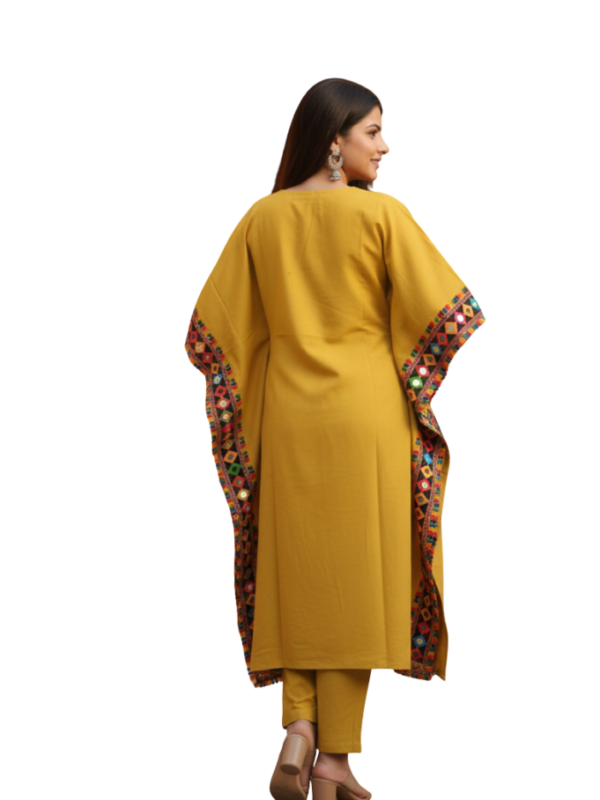 Women’s Mustard Embroidered Kaftan Kurta Set with Plazzo – Cotton