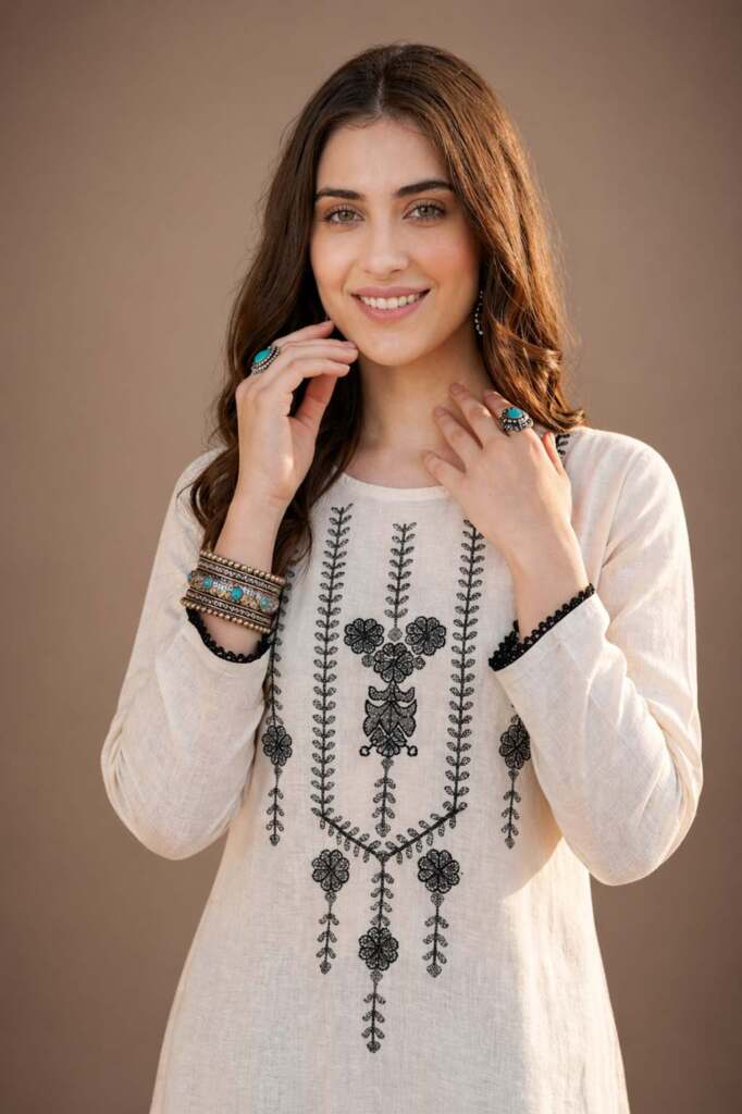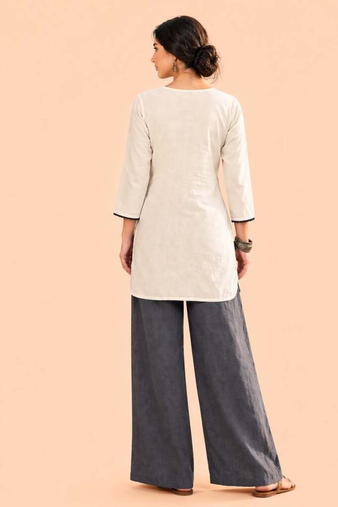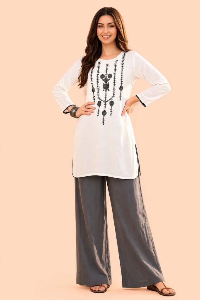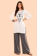 Women’s White Embroidered Short Kurti – Elegant Ethnic Co-Ord Set